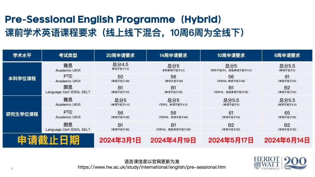 混合模式必须使用UKVI类语言进行申请 , 且 需在2024年6月10日第3模块 开始授课前,抵达大学校区 完成后半部分的学习 ;可用以下考试成绩进行申请: