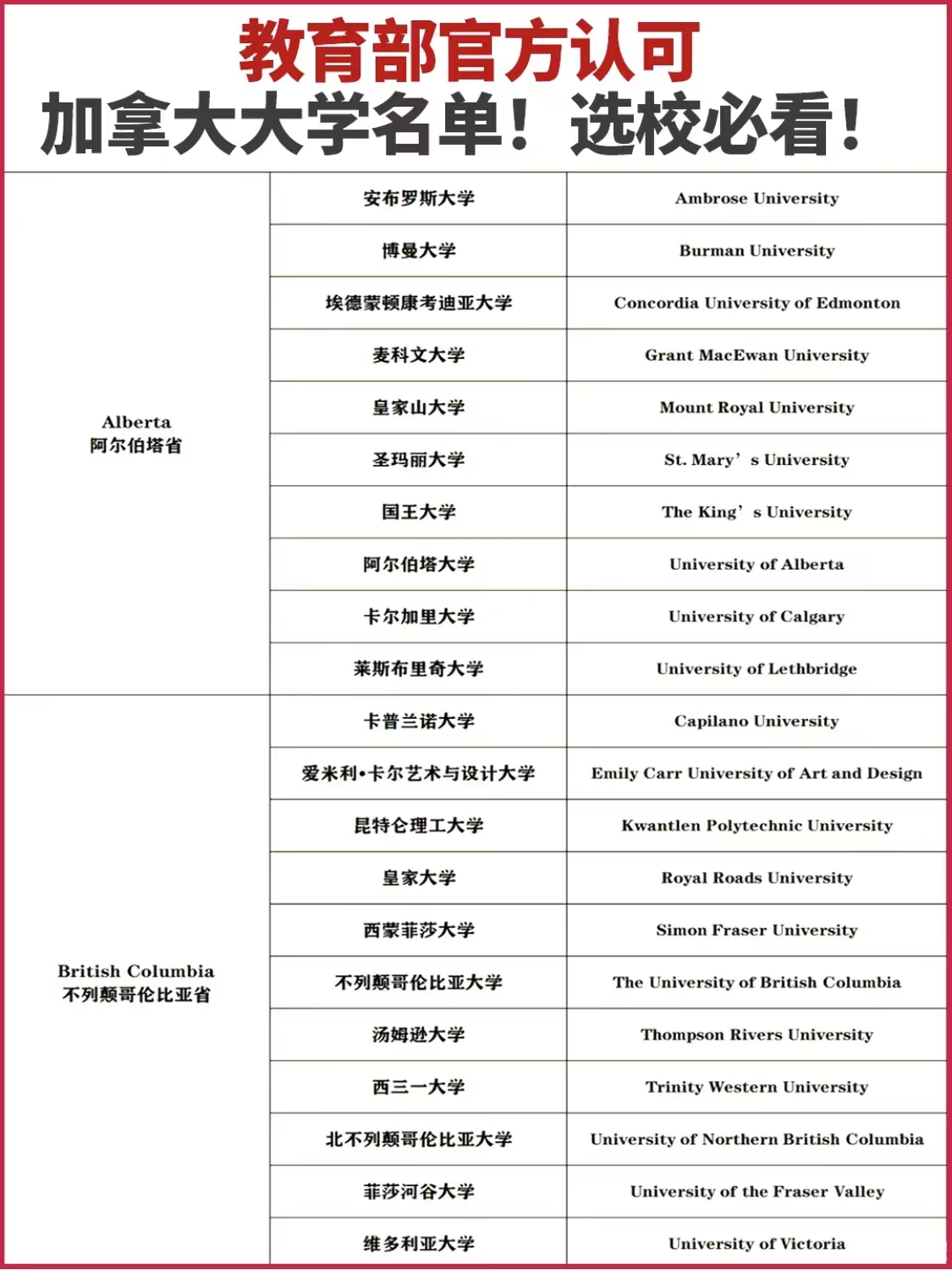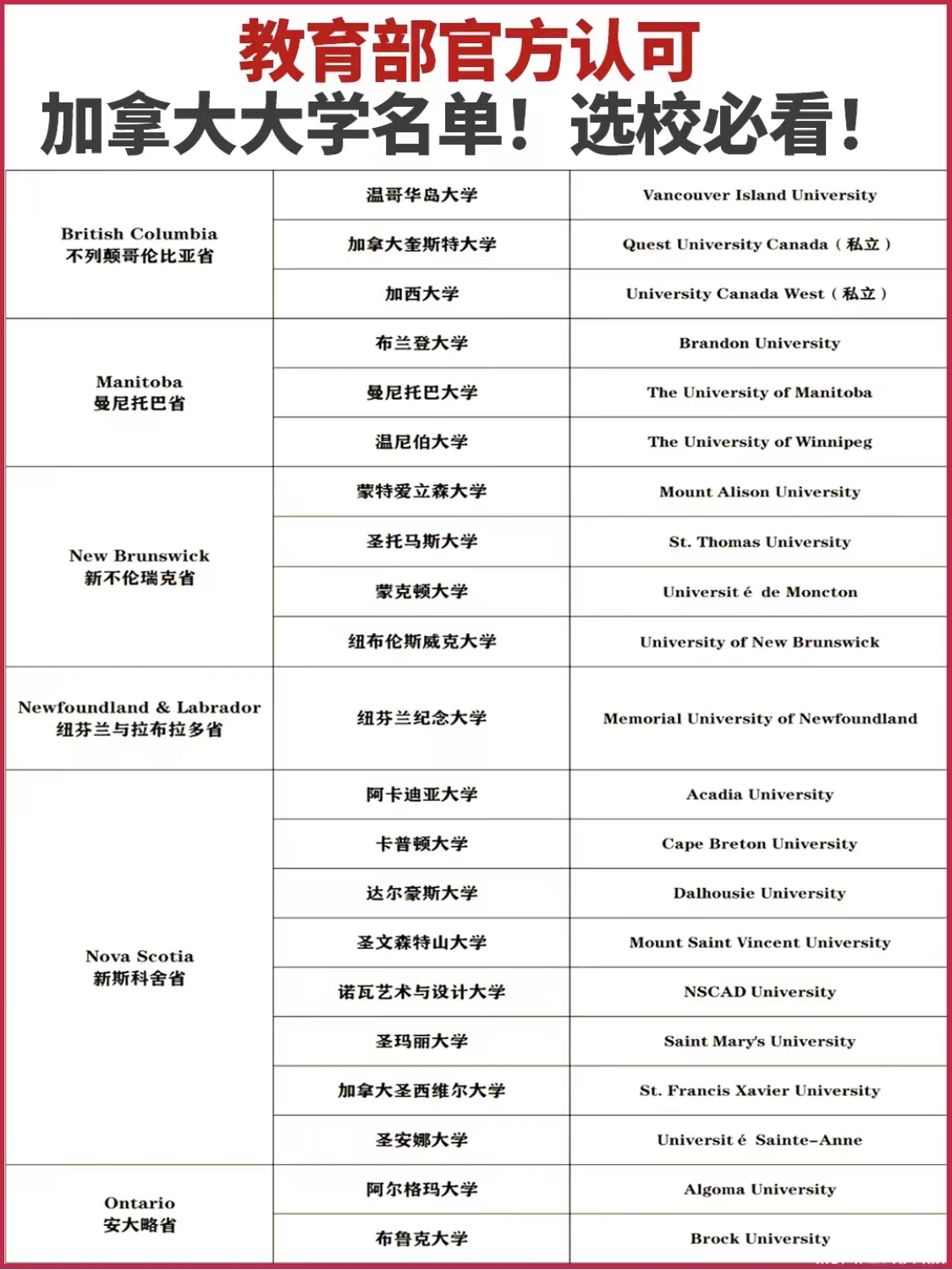 教育部认可的加拿大大学名单!拒绝野鸡大学