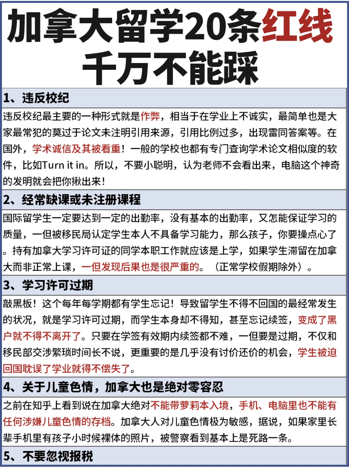 下面为大家盘点加拿大留学20条红线,快和小编一起来了解一下!千万不要触碰禁