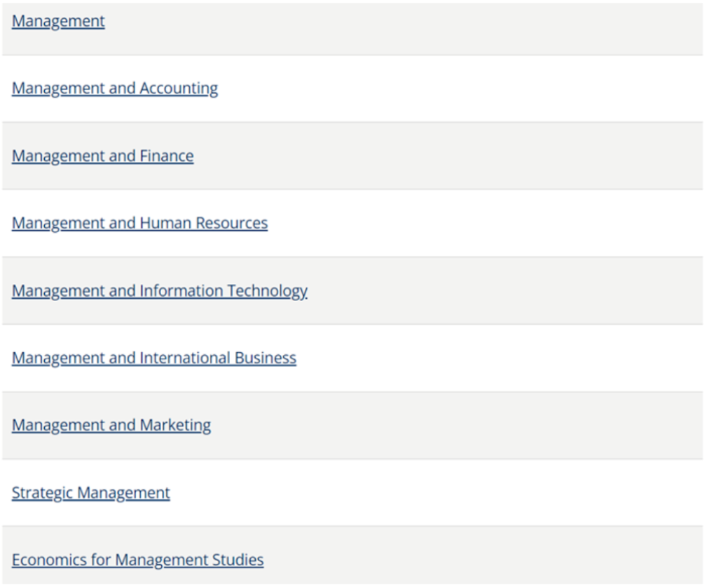 “BBA”, Bachelor of Business Administration,这是多大官网上课程框架的介绍: