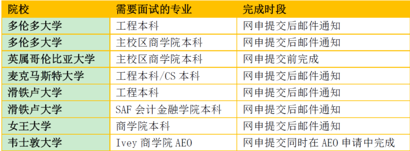 近些年,加拿大的院校录取政策不断调整,越来越多的大学在申请中增设了面试或附加申请环节。 特别需要关注的是: 在新开放的2024秋季申请中,女王大学的Smith商学院Commerce专业和韦士敦大学Ivey商学院AEO也分别增加了面试环节。