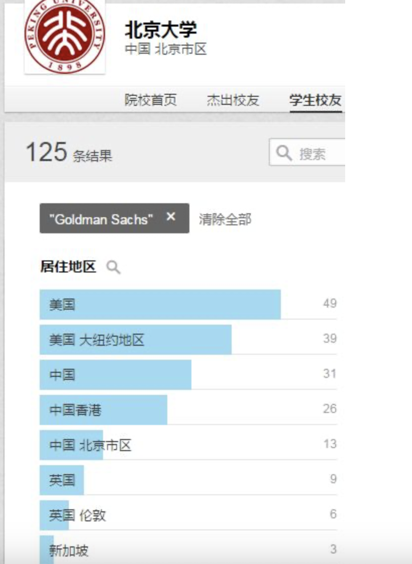 北京大学进入过高盛的校友有125个: