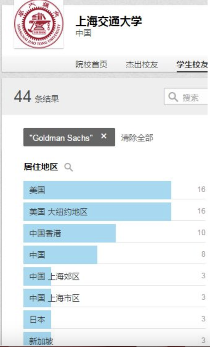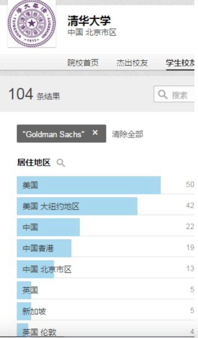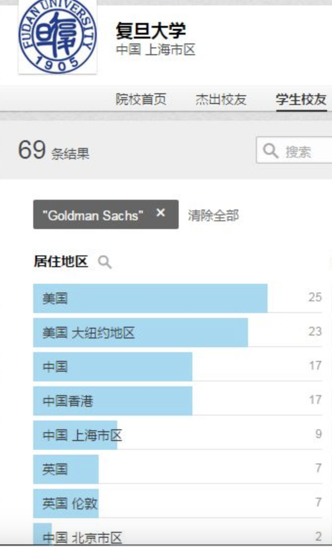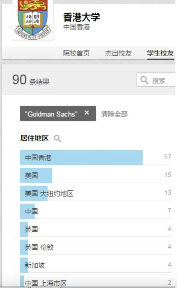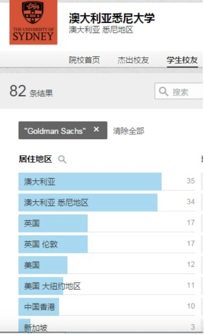 下面我们看看Linkein上面清北复交外加浙大、香港大学的在高盛的校友人数情况,并与墨尔本大学、悉尼大学做对比