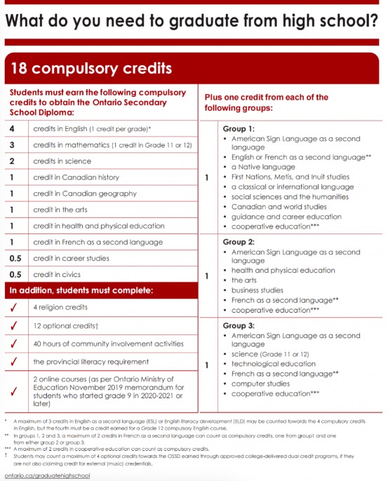 安大略省政府对所有高中学生提出了一项新的强制性毕业要求,从 2020-2021学年进入九年级的学生开始,这些学生必须获得至少两个在线学习学分,2023-2024 学年毕业的学生将是第一批被要求完成这两门在线课程的学生。 不过,虽然在线课程将是强制性的毕业要求,但也会根据个人情况对部分学生进行豁免。
