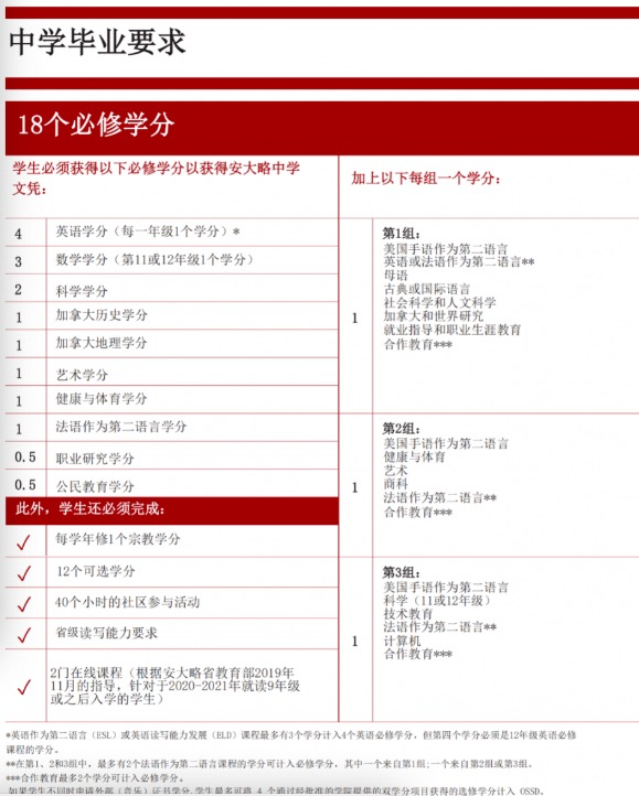 学生要想获得安省高中毕业证书,在高中阶段(9-12年级)需要满足以下四个条件