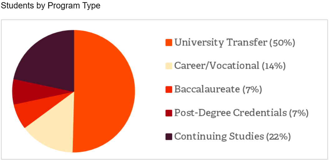 兰加拉学院拥有多元化的国际学生, 2022年春季共有在超过13000名就读全日制课程的学生当中,国际学生占4333名,他们来自102个国家和地区, 其中50%是在修读大学转学分课程。