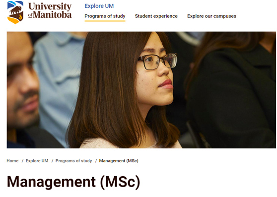 5.曼尼托巴大学 MSc in Management(marketing)