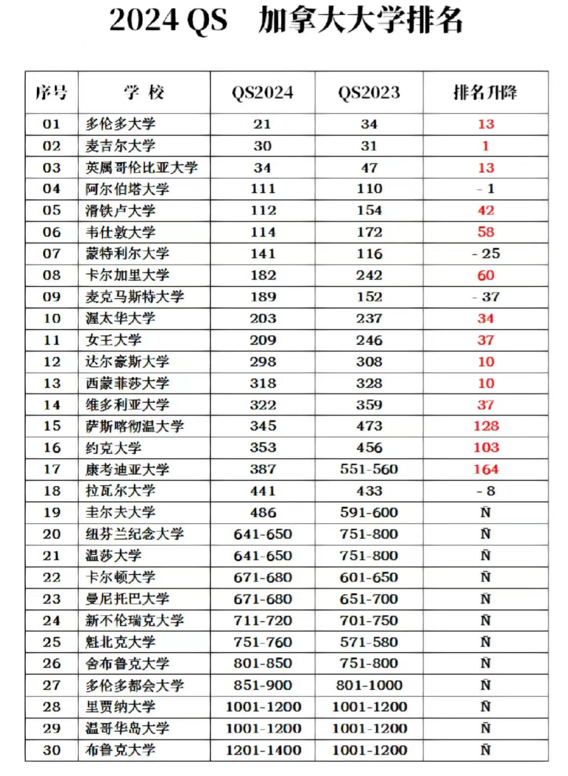 那么2024年QS排名来看,加拿大各大学的排名又怎样呢?