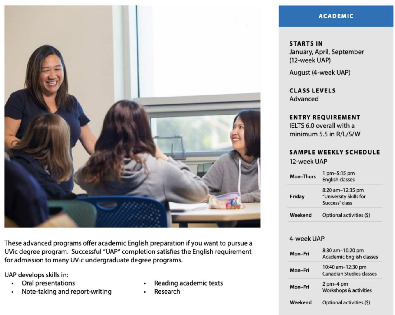 常规的UAP是每期12周,分别在1/4/9月开课,但是,学校为了更好的服务9月开课的学生,特意安排了7月份开课的浓缩UAP课程,为期4周