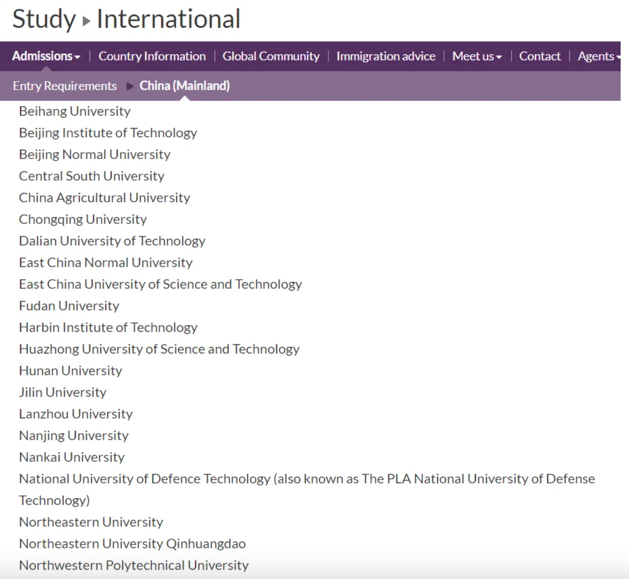 华威大学将国内院校分为4档,对每一档院校背景的学生分数要求不同。