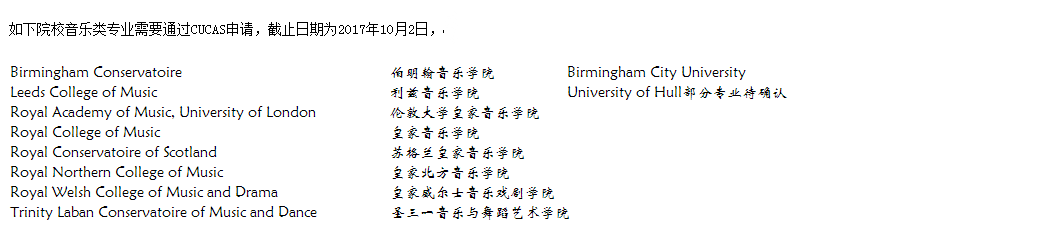 10月1号英国时间18:00 –申请音乐类艺术院校