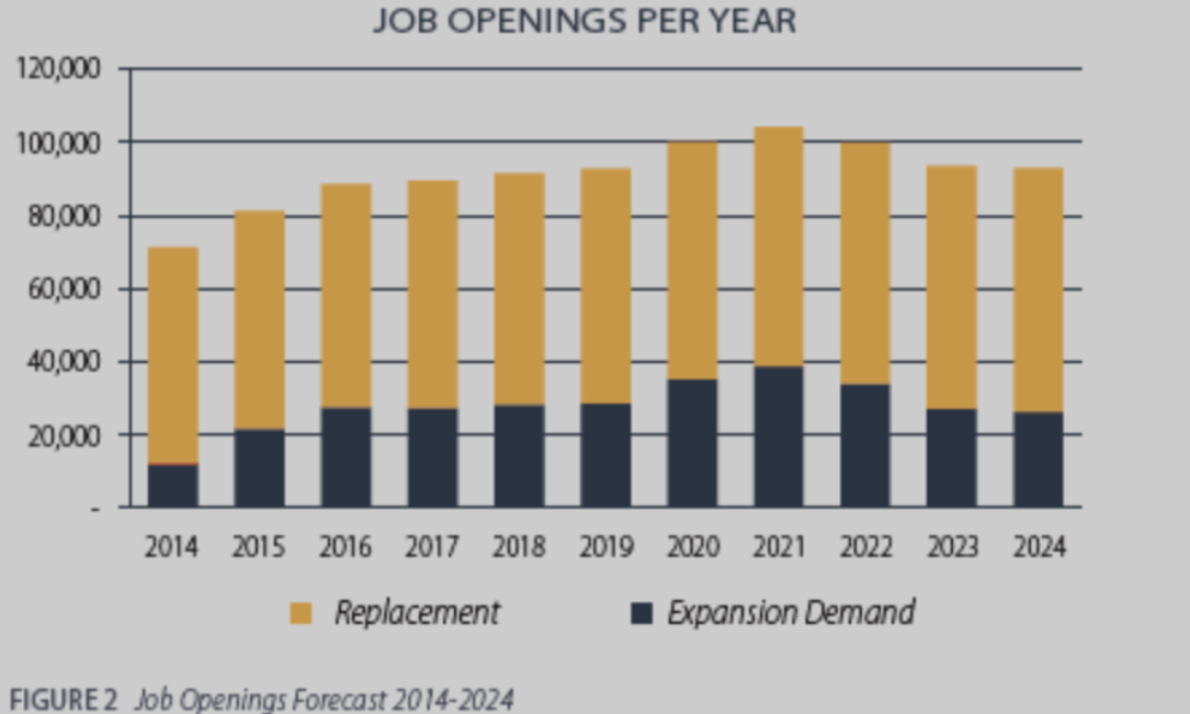 图2: 未来十年预计会有93.5万个新增就业岗位