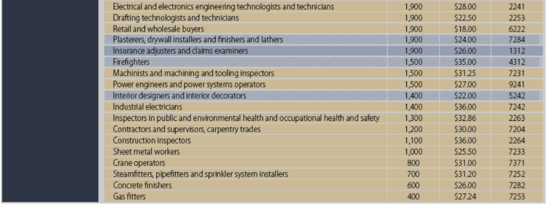 如上图所示:这部分工作通常要求有至少学院教育学历或者学徒教育经历。这些职位更加偏务实的操作实践。其中需求最大的来自行政类岗位,还有木工和会计记账等初级岗。值得注意的是,在这个领域,许多需要专业行业技能的工作收入最高,例如电工、消防员、水管工、保险理赔员、装修工人等等。