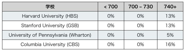 很明显,对于 HBS , GSB , Wharton 以及 CBS 来说,能否转正的关键在除了你其他的 creential 以外,一个 GMAT 高分( 740+ )是很重要的;从数据上来看, 740 以下的分数的转正几率为 0