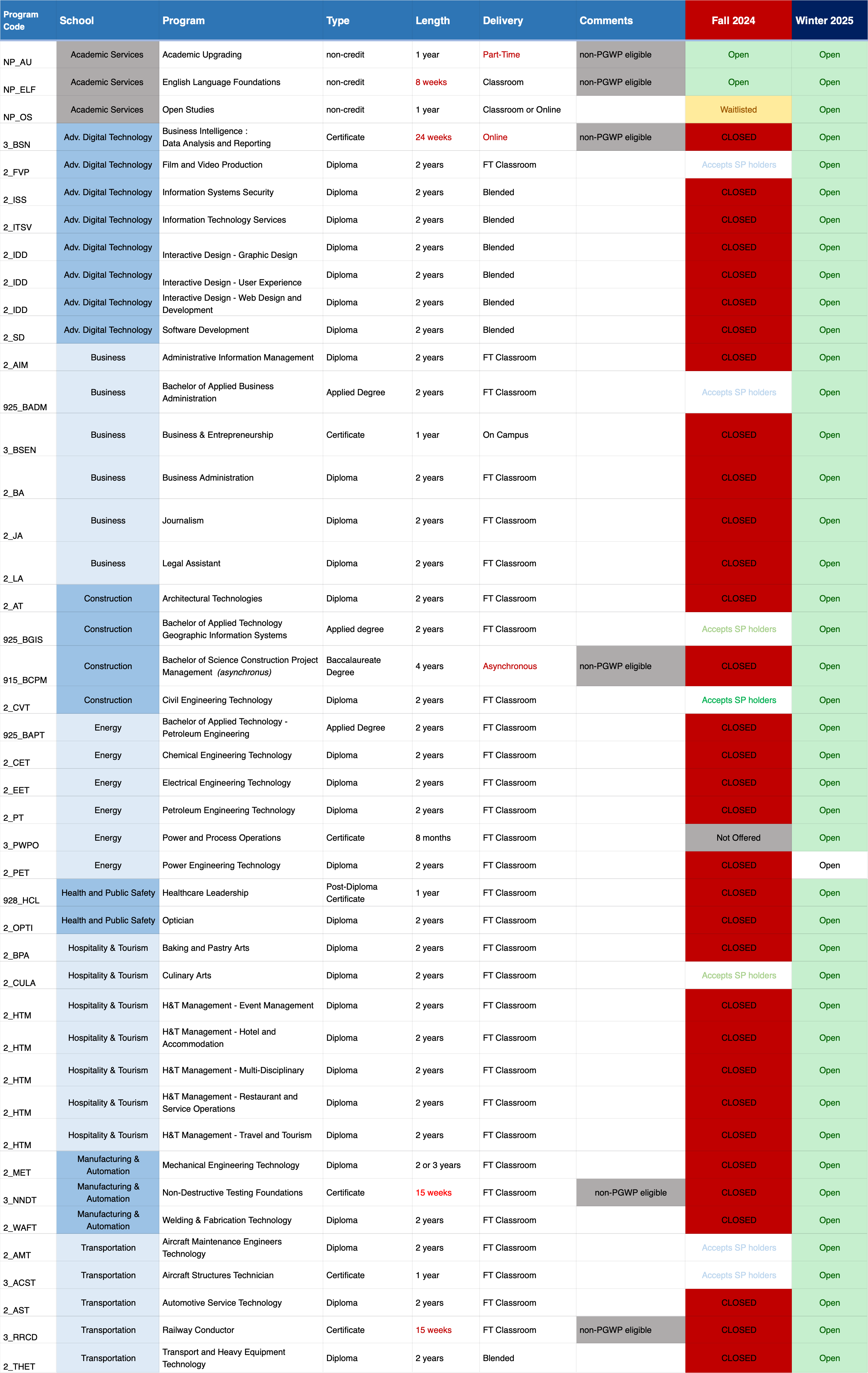 今天已经开放了2025年冬季的申请,具体的专业可以参考以下信息: