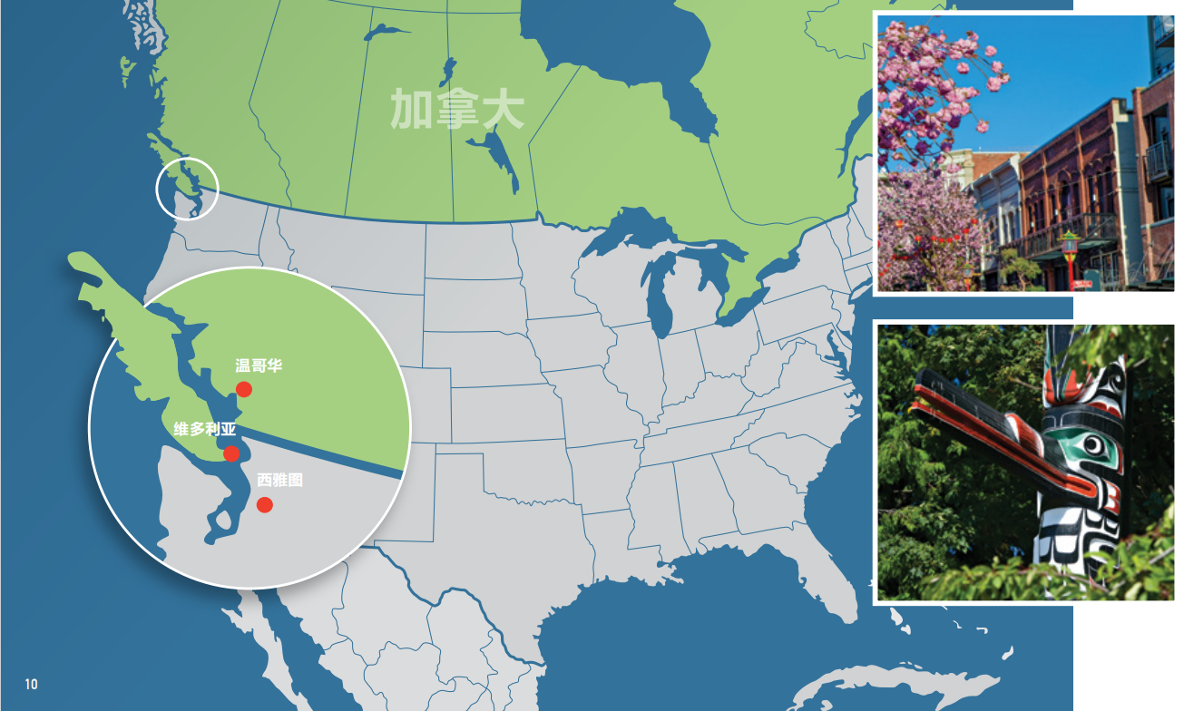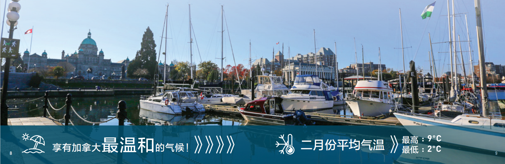 维多利亚位于加拿大西海岸温哥华岛的南端,是一个 36 万人口的中等城市,具有鲜明的欧洲风味。这里拥有世界上秀丽的风景和各种娱乐活动。作为加拿大西海岸的第二大城市,维多利亚还拥有丰富的海洋历史和传统。到访维多利亚很容易,有飞机直达其国际机场,或从卑诗省的温哥华,或华盛顿州的西雅图,乘一小段渡轮便可到达。