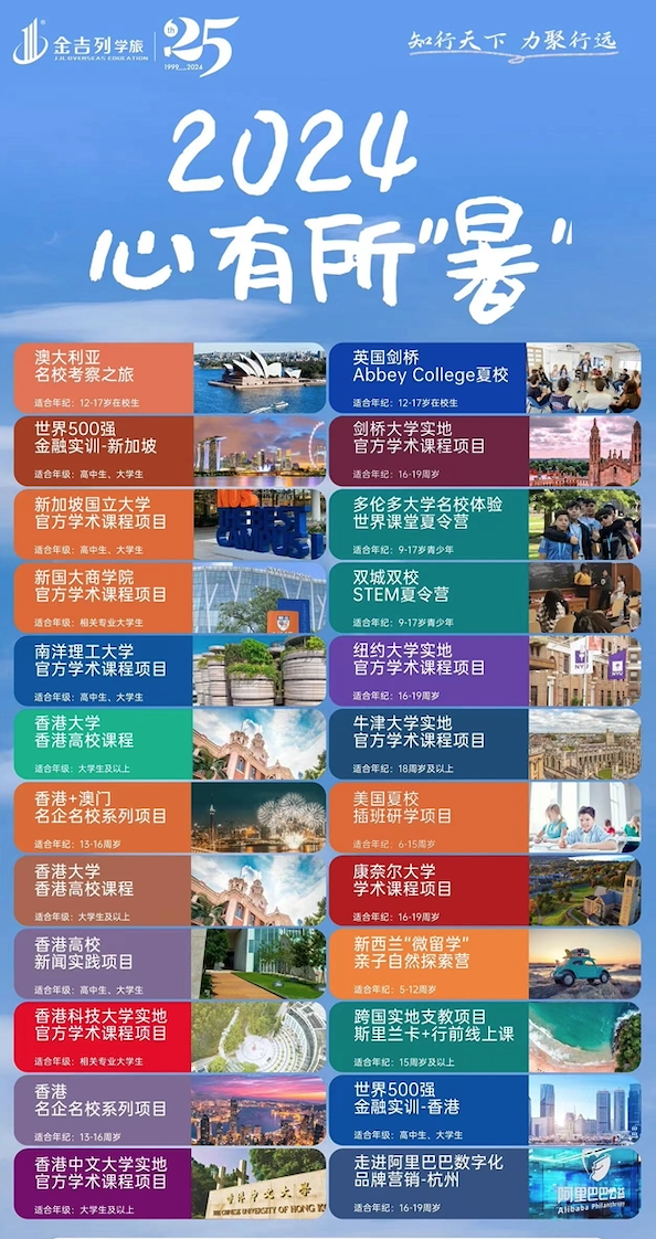 下面金吉列学旅所有游学夏校项目的列表,如果有感兴趣的项目可以随时联系付老师哦!