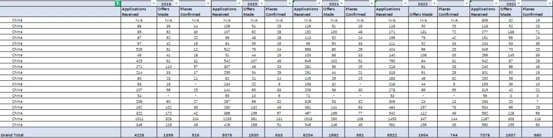 以往我们常常从全球申录数据中进行参考对比,而忽略了中国学生的申录数据。