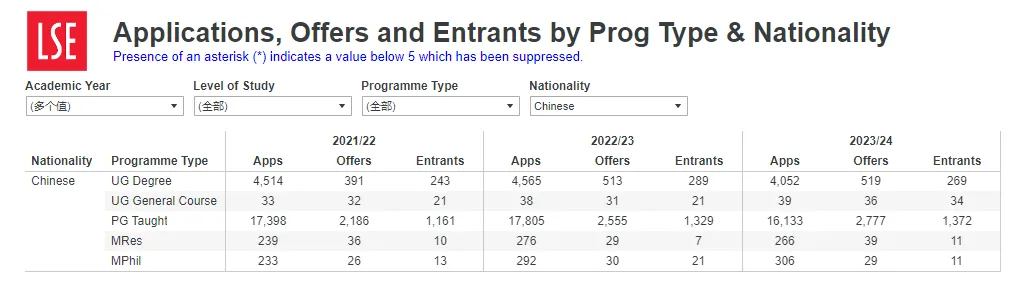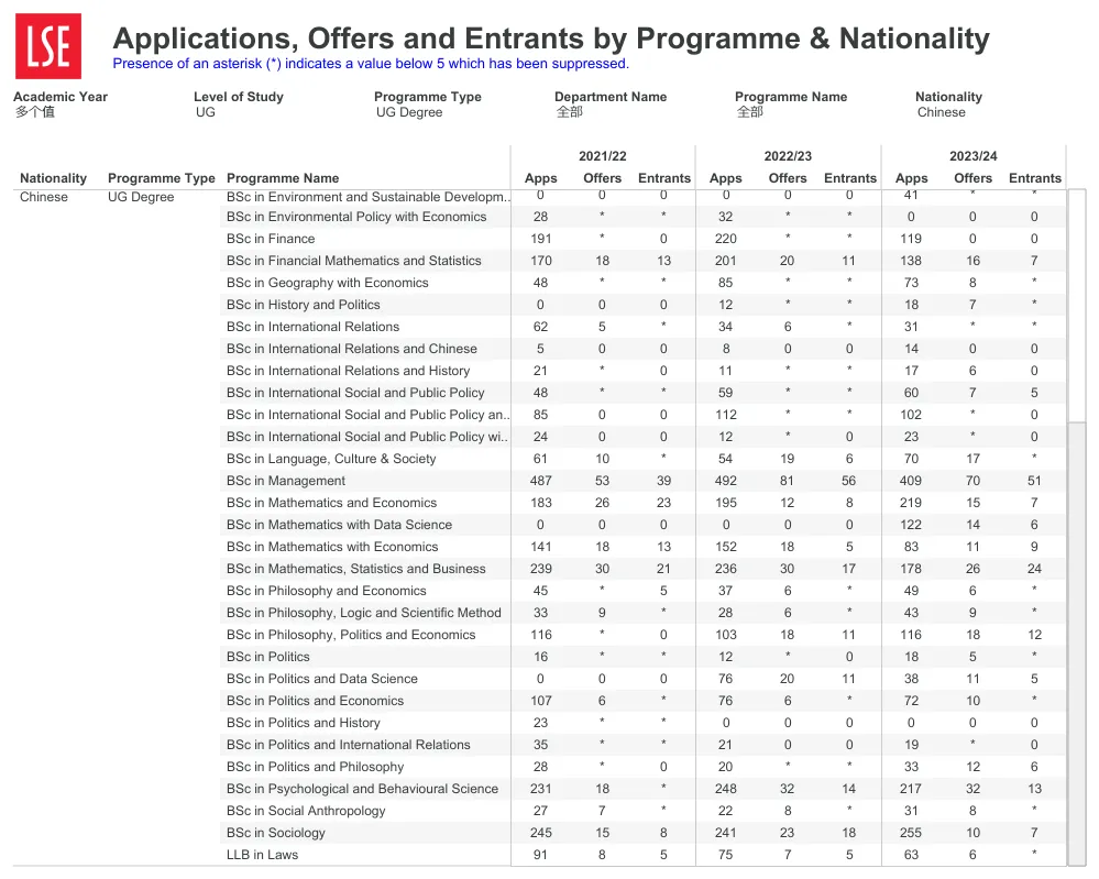 根据官方报告,23/24年申请LSE的中国学生数为4052人,其中收到519封offer,offer率为12.8%,最后有289人成功入学,录取率为7.1%。
