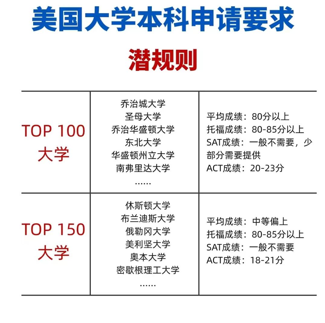 如果申请人的GPA在85以下,那就很难申请前50的学校;GPA在80以下,基本上也就告别了Top100的学校。“软实力”则是考察学生的专业能力以及学术方面的潜力,也是判断该学生是否具备该学科所培养的目标人才的潜力的重要因素。所以我们可以得出结论,“GPA”成绩是通往美本的敲门砖,“软实力”则是评估该学生“是否值得被我校录取的重要参考标准”。二者缺一不可,美本申请的主要组成要素就是这些,了解过的同学都知道,“短板理论”是美本申请的铁定律,能被顶级名校录取申请人,基本上样样拿得出手!