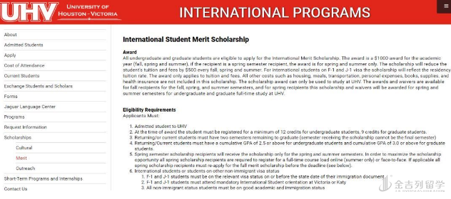 现休斯顿大学维多利亚分校为国际生开设 Merit Scholarships ,奖学金仅体现在学费上,不含餐饮、住宿、保险等费用,仅限攻读春季学期或夏季学期的全日制学生,本科和研究生项目皆适用。