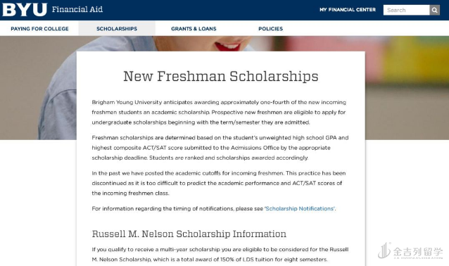 位于犹他州 Provo 的杨百翰大学为鼓励更多学生申请入学,现为国际生提供学术奖学金。仅限本科项目,名额预计覆盖四分之一的新生,国际生需提交语言成绩。