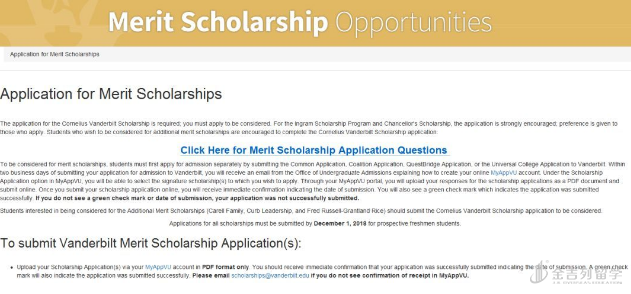 2019 年范德堡大学 Merit-base 奖学金