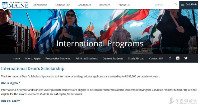 2019 年缅因大学国际生奖学金