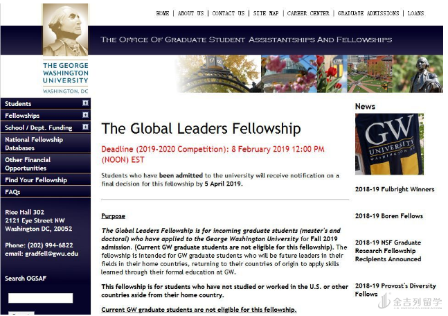 2019 年乔治华盛顿大学全球领导者奖学金