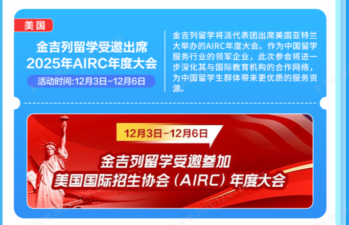 活动二:金吉列留学受邀出席,2025年AIRC年度大会(点击了解更多)