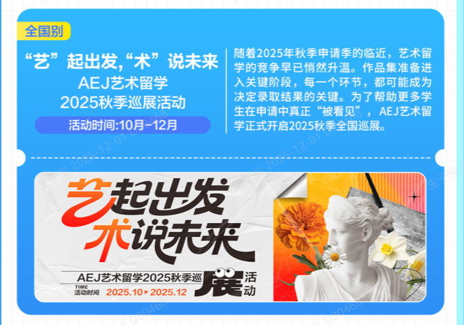 活动五:“艺”起出发,“术”说未来,AEJ艺术留学,2025秋季巡展活动(点击了解更多)