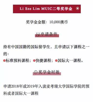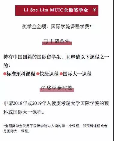 Li Sze Lim MUIC Scholarship是专为中国优秀高中学生设立,鼓励学生通过学习麦考瑞大学国际学院课程,进入麦考瑞大学本科学习。