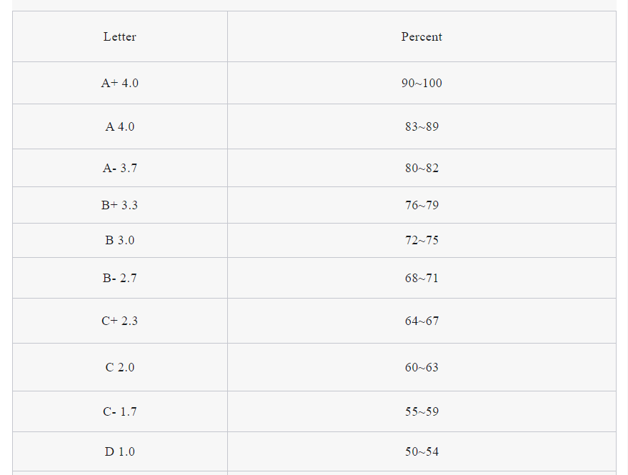 例如英属哥伦比亚大学,又称为“卑诗大学”,简称UBC,这是一所以科学研究而闻名的顶尖院校,该校自1908年成立至今,经过近百年的历史洗礼,现在已经从最初为麦吉尔大学位于温哥华的分校,发展成为集教学、科研为一身,蜚声国际的顶尖综合研究型大学。 90%的分数在UBC系统中相当于GPA4.33。对于中国大学生的平时成绩要求在85%以上,也就是GPA4.0以上。