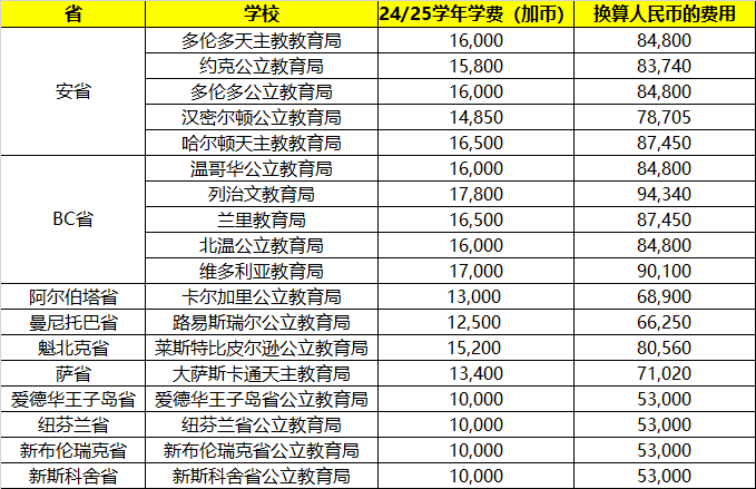 很多家长对于加拿大公立高中的费用情况很感兴趣,大家可以参考以下的学费汇总: