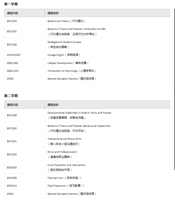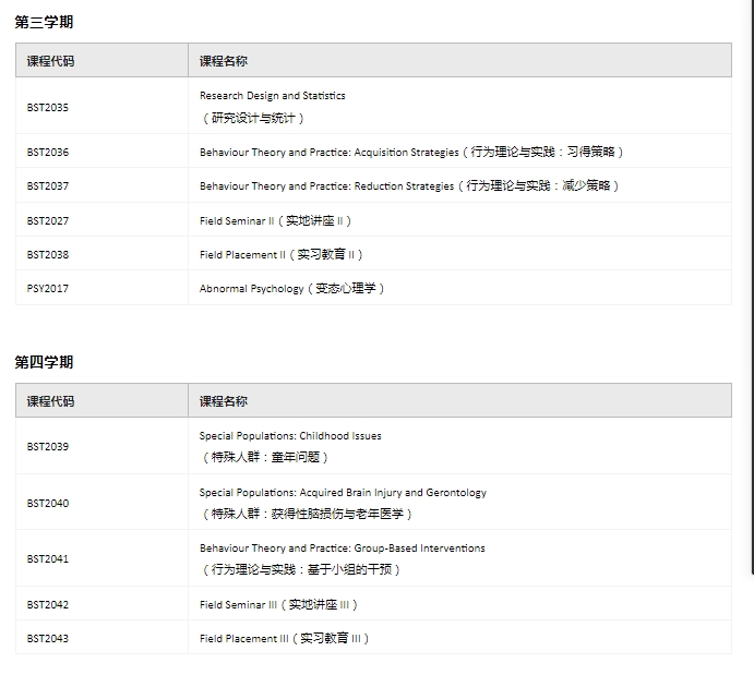 行为及时作为新兴专业,收到很多学生的追捧,具体课程设置如下: