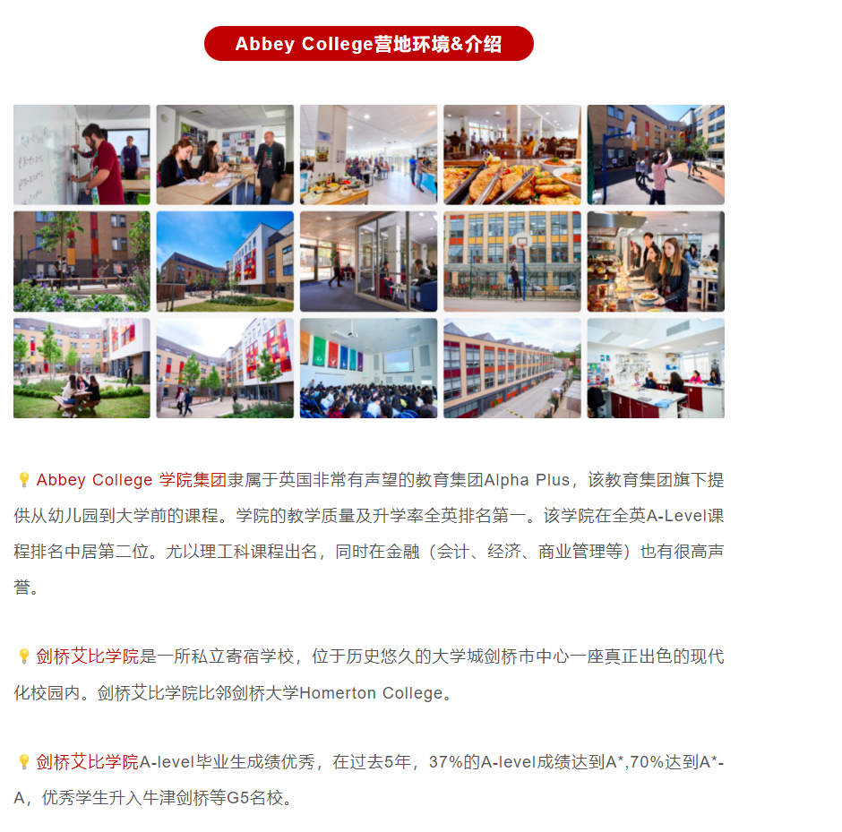 但“精进去美国,浸润去英国”, 综上所述,今天我们这期推荐——英国,走进剑桥Abbey College,感受学术殿堂的庄严与魅力。