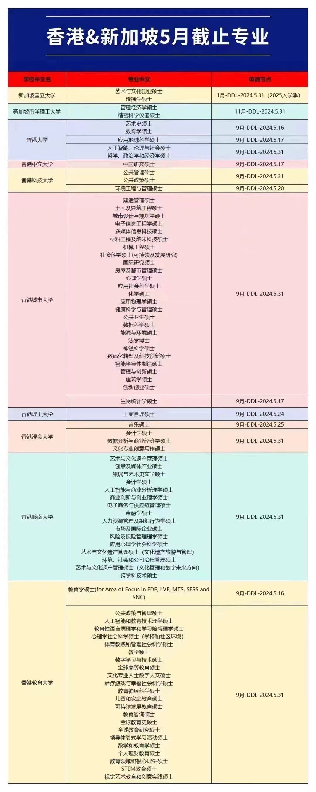 5月香港八大&新加坡前二的DDL一览,仅供参考~