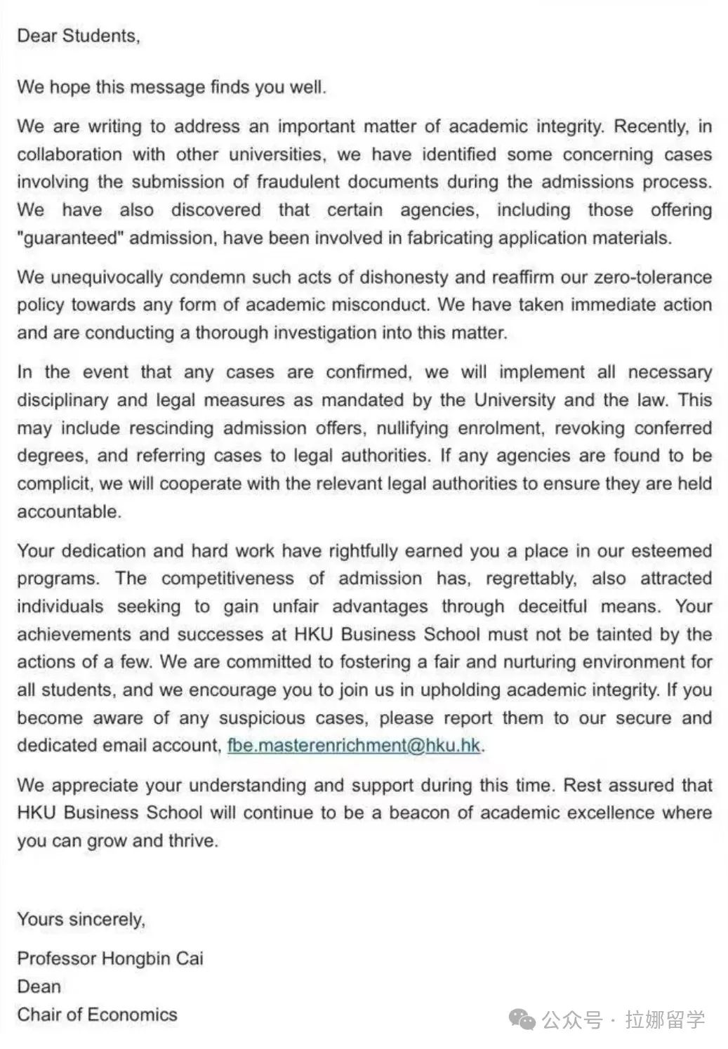 如果发现有此类情况,可向港大举报,邮箱是:fbe.masterenrichment@hku.edu.hk