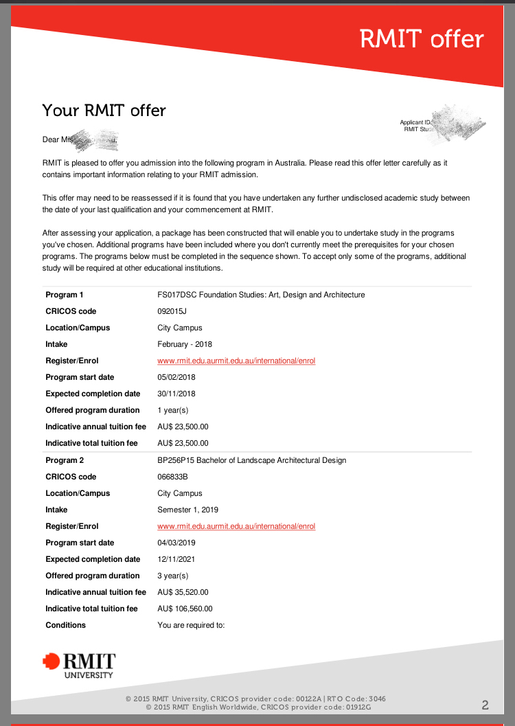 果然金子到哪里都发光,以设计建筑出名的皇家墨尔本理工大学,直接给孩子发出了预本硕的offer!