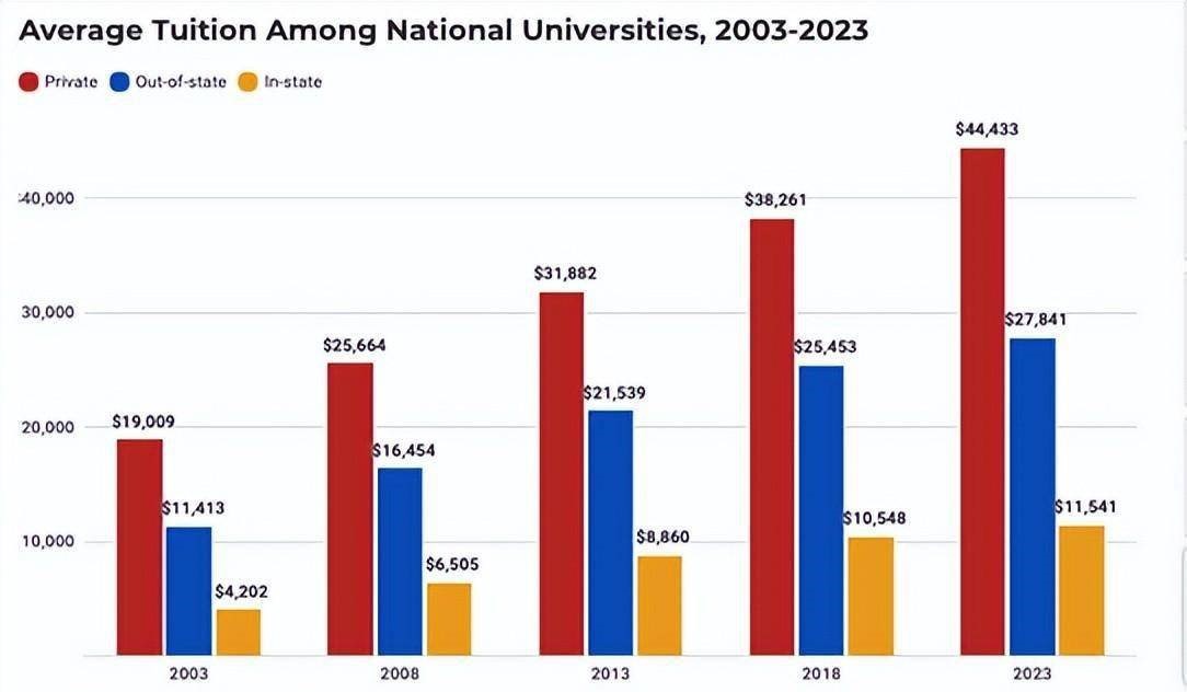 可见,无论是私立还是公立大学,学费都直线上涨。