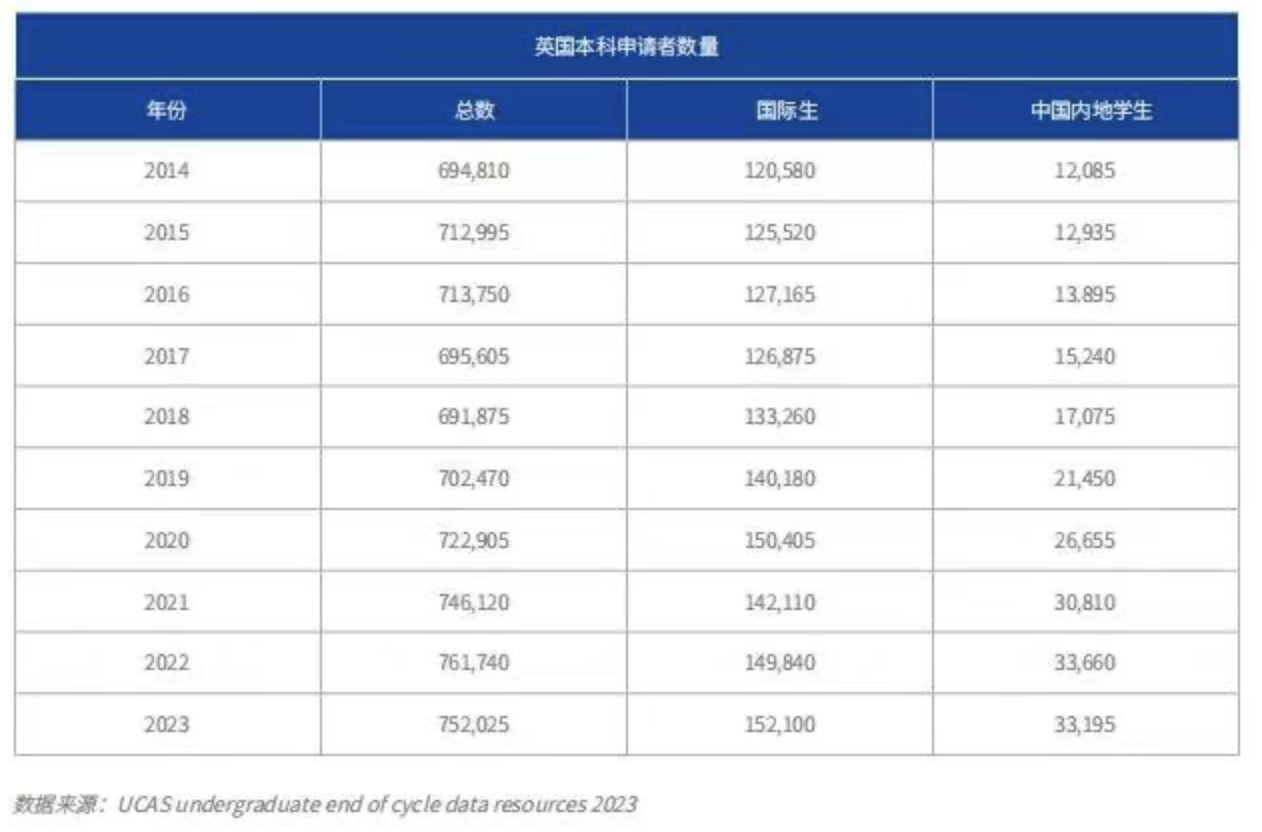 根据下图UCAS对英国本科申请数据趋势统计中不难看出,高考并不是唯一出路,越来越多中国内地学生和家长逐渐转移赛道,把本科留学作为高等教育的关键转折。