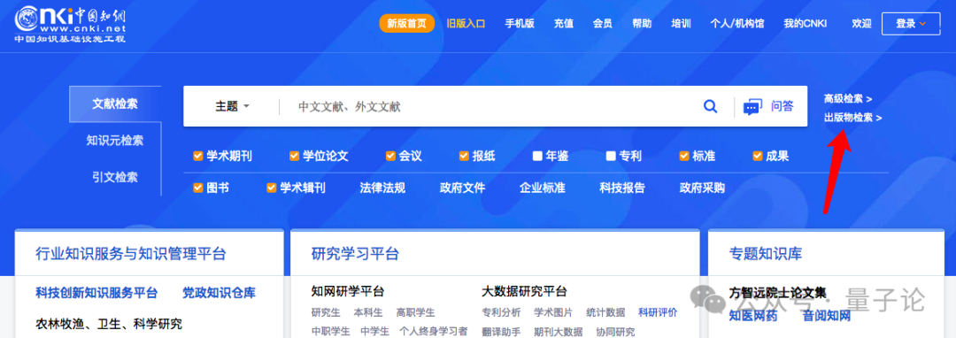 点击搜索框右侧的“出版物检索”链接。