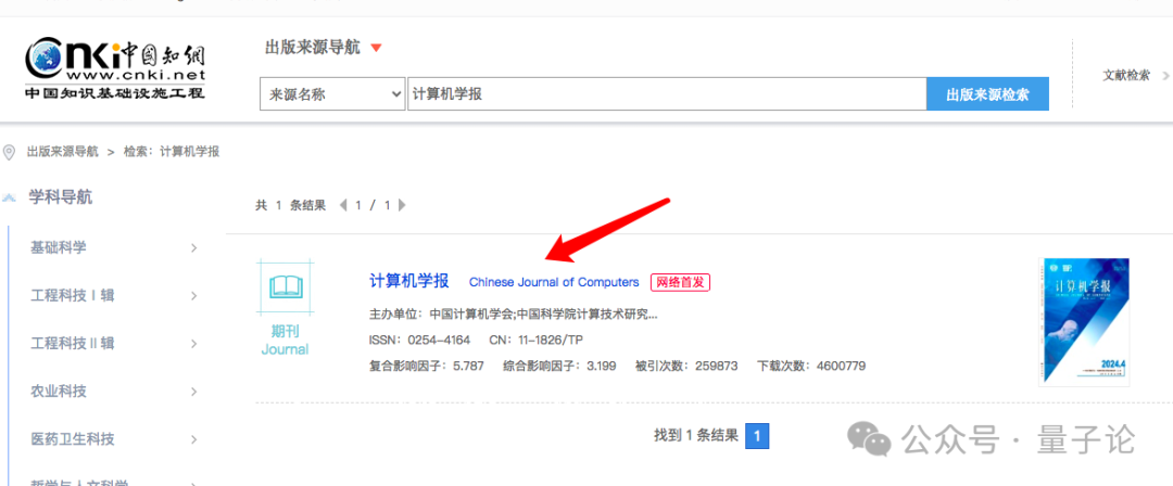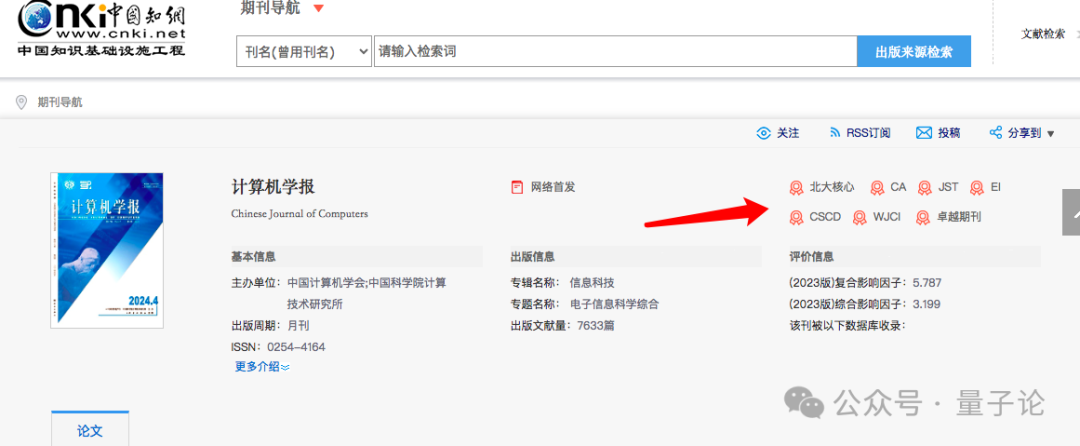 杂志的详细信息即可呈现出来,以《计算机学报》为例,通过右上角的标签列可以看到,该杂志是北大核心。