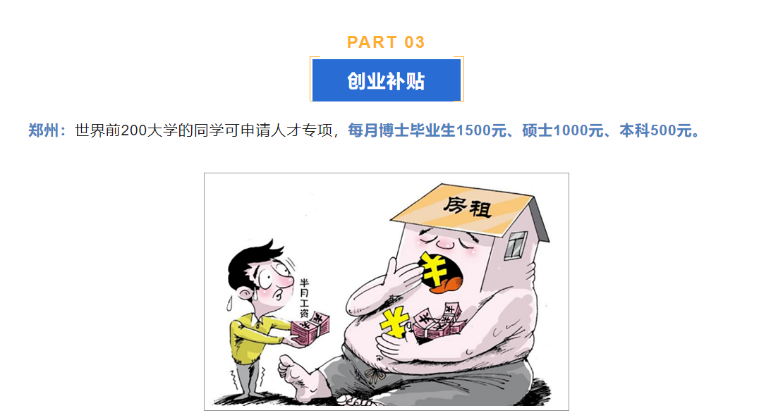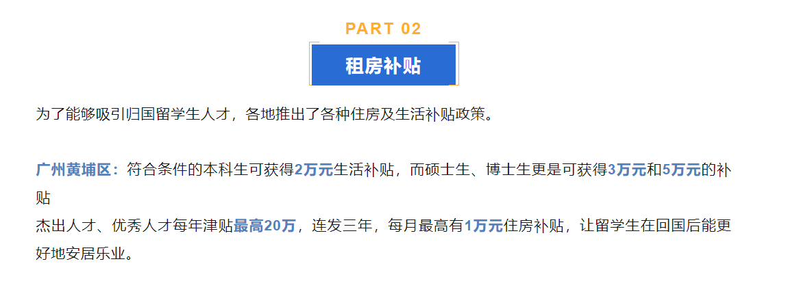 - 南京: 留学回国人员本科每人每月生活补贴 600元 ,硕士 800元 ,博士 2000元 ,累计不超过 36个月 ;租赁补贴本科 每月600元 、硕士 每月800元 、博士 每月2000元 ,可连续领取5年。