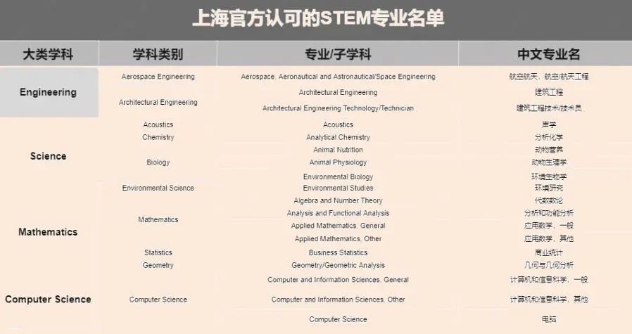 从官方名单来看,上海认可的STEM领域专业多达400+。