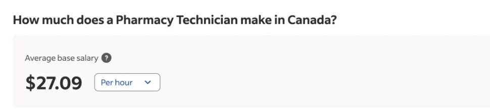 药剂师助理还享有不错的收入。 根据indeed的薪酬调查数据显示,在加拿大,药剂师助理的平均时薪可达CAD$27.09。