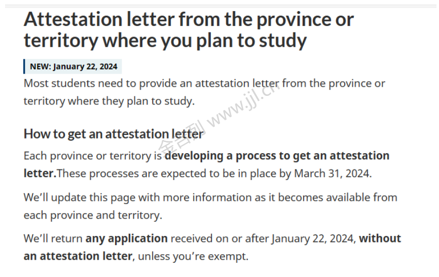 自2024年1月22日起, 新递交的学签申请必须包含省级认证信(Attestation Letter,必选材料 ) 。