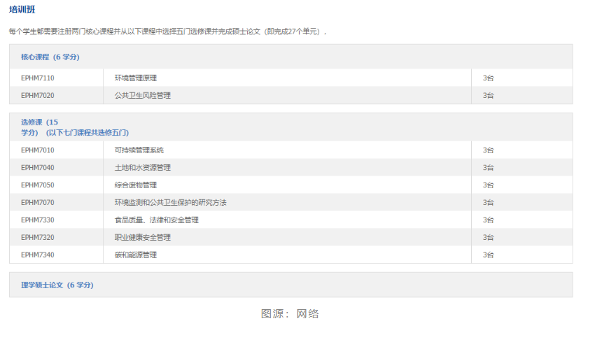 学生必须完成 该课程共 27 学分, 其中包括完成 2 门核心课程(共 6 学分)、5 门选修课程(共 15 学分)、硕士论文(6 学分),并在持续评估和笔试中取得令人满意的成绩。学生必须获得至少 2.50 的累积 GPA 才有资格获得理学硕士学位。