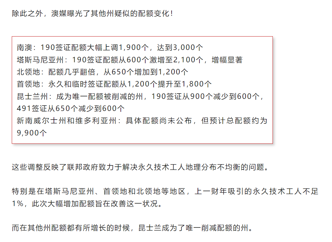 从最新财年的移民配额分配来看,澳洲政府明显加大了对雇主担保和偏远地区移民的支持力度。