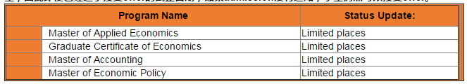 Limite Places 学生将会收到amission发来的此课程需求较高的邮件,不接受任何新的申请,所有offer holer应该在amission给的时间范围内接受offer。amission会及时就课程的最新情况通知学生,因此即使已经过了接受offer的截止日期,如果amission没有通知,学生仍然可以接受offer。
